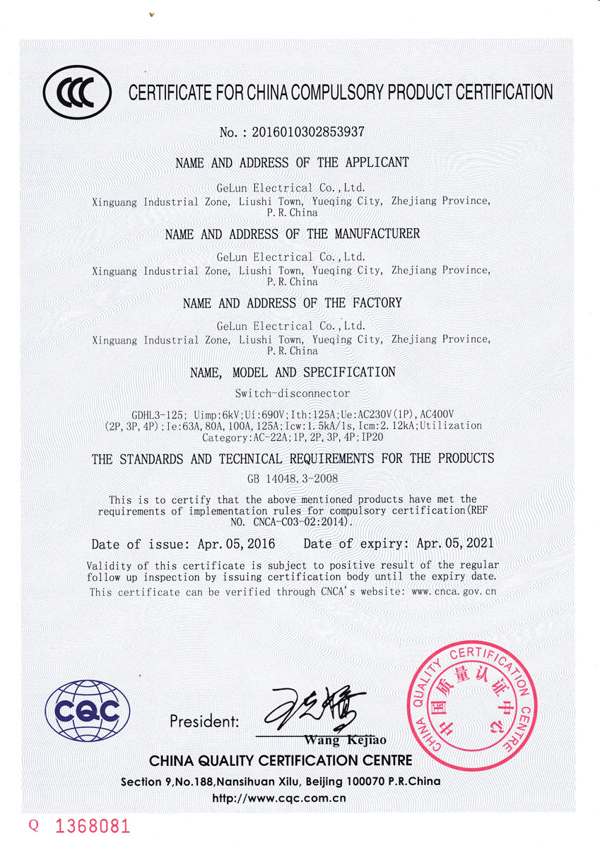 GDHL3-125 series isolating switch is suitable for AC 50Hz, rated working voltage up to 400V, the agreed heating current to 125A circuit, mainly used for switching resistance load, for the purpose of line and power isolation. This product has a lock function. The maintenance personnel can lock the handle while repairing, which can prevent accidental closing during maintenance. There is also a visible window to see the breakpoint of the contact.