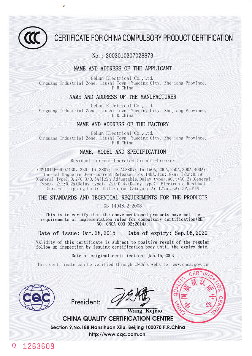 GDM101LE-400 series residual current operated circuit breaker is suitable for AC 50Hz rated working voltage 380V and below, its rated current up to 630A, power supply neutral point directly grounded in the power supply system. For the purpose of leakage protection, it can also be used to prevent fire hazard caused by grounding fault current due to equipment insulation damage. It can also be used to distribute electric energy and protect lines and power equipment from overload and short circuit. Circuit breakers can also be used as lines infrequent conversion.