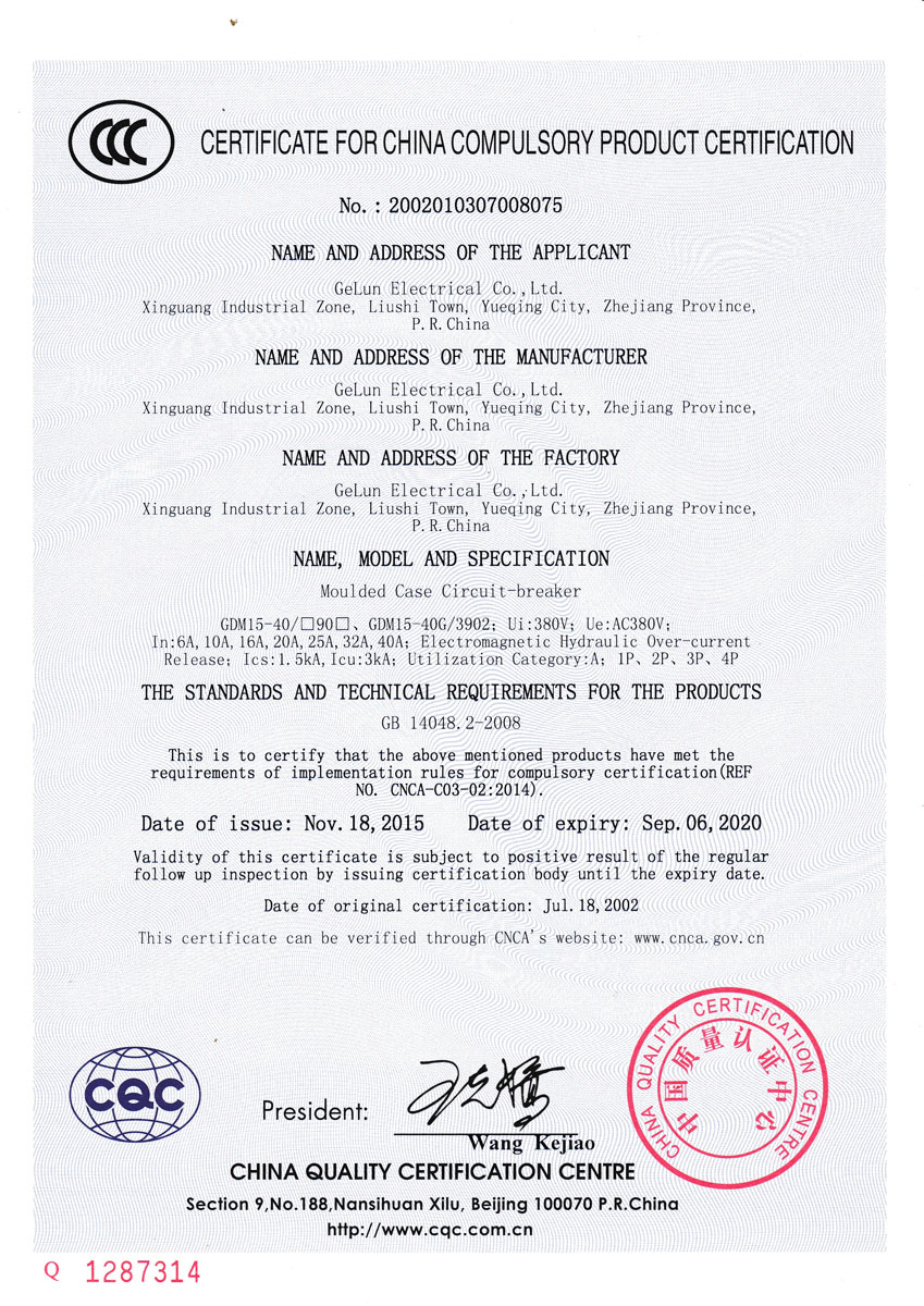 Comply with the IEC60947-2、GB/T 14048.2 Standard