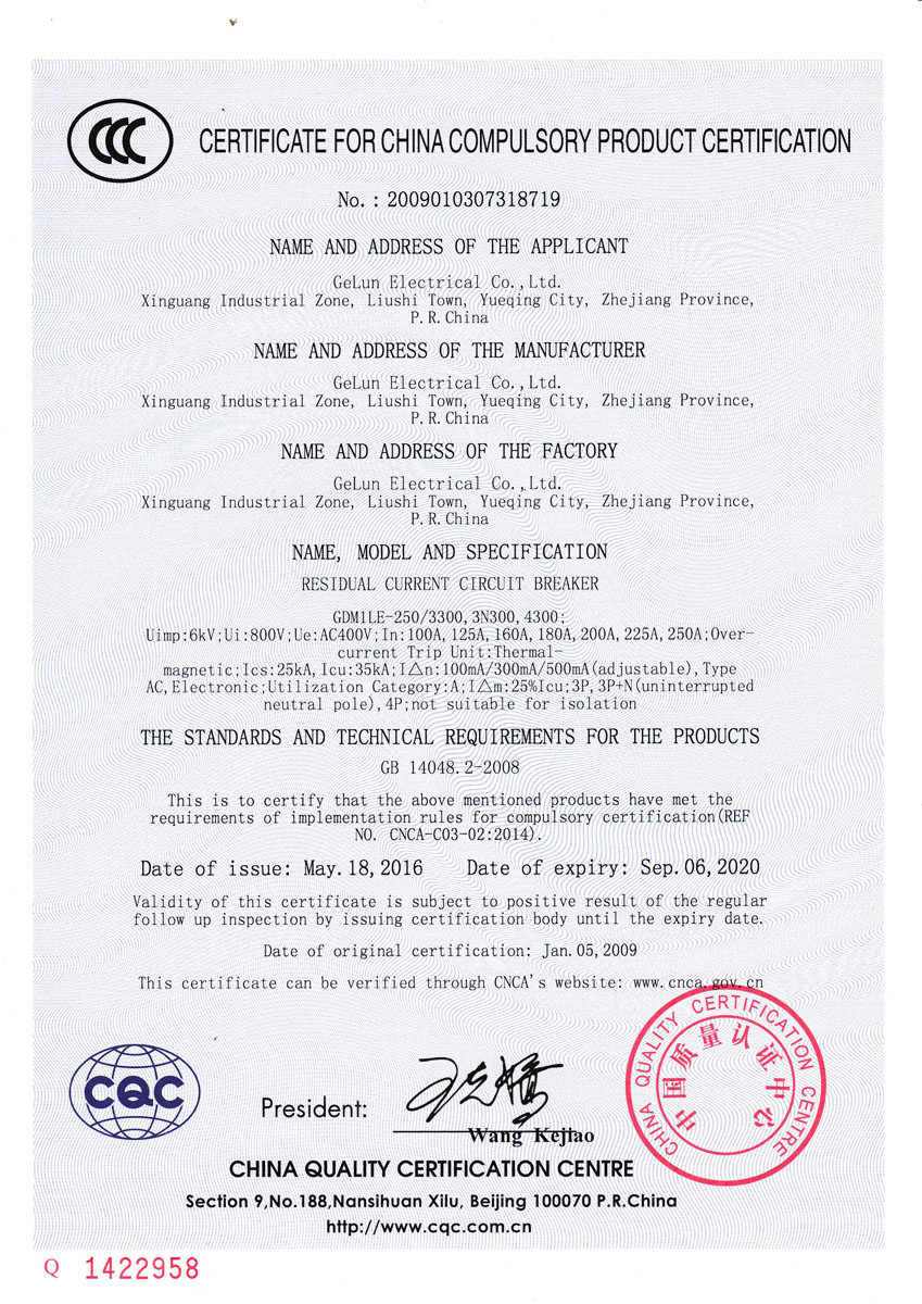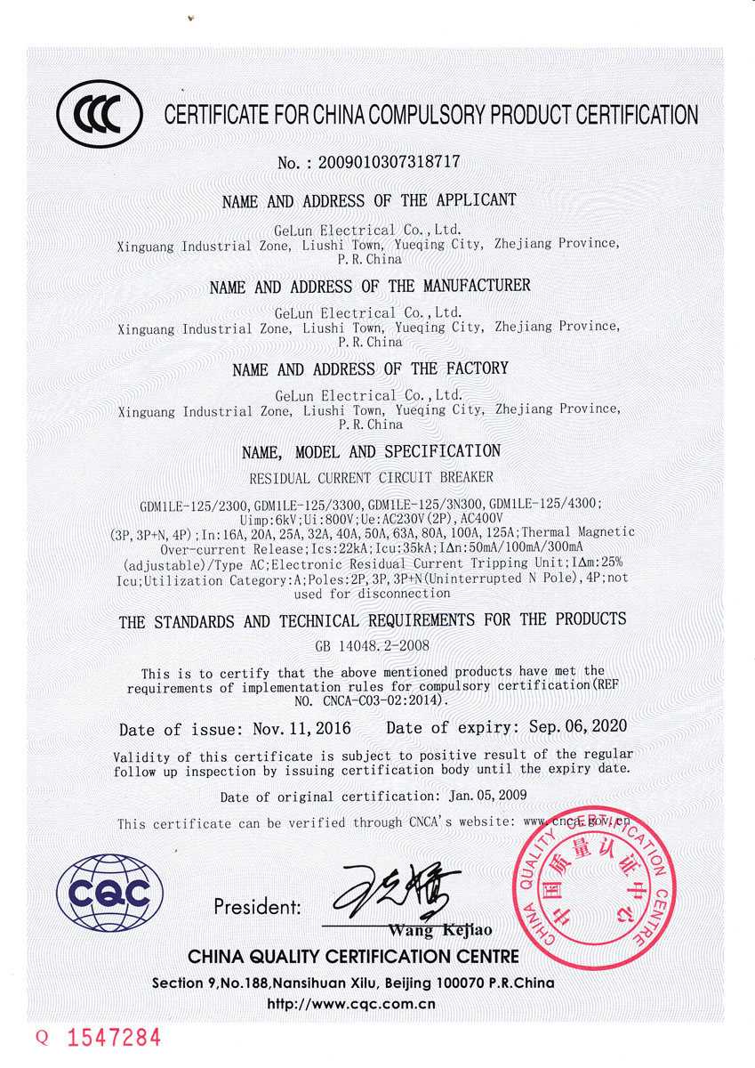 Comply with the IEC60947-2、GB/T 14048.2 Standard