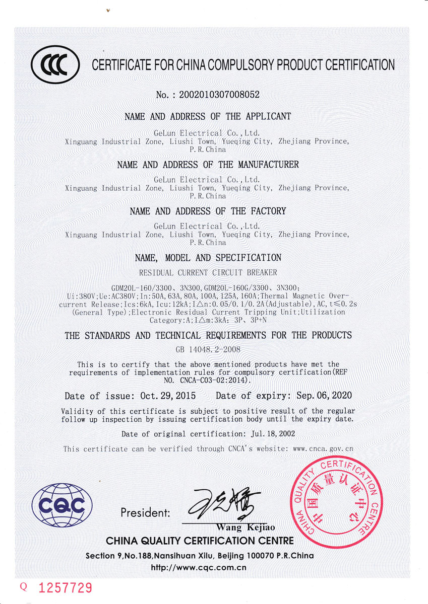 Comply with the IEC60947-2、GB/T 14048.2 Standard