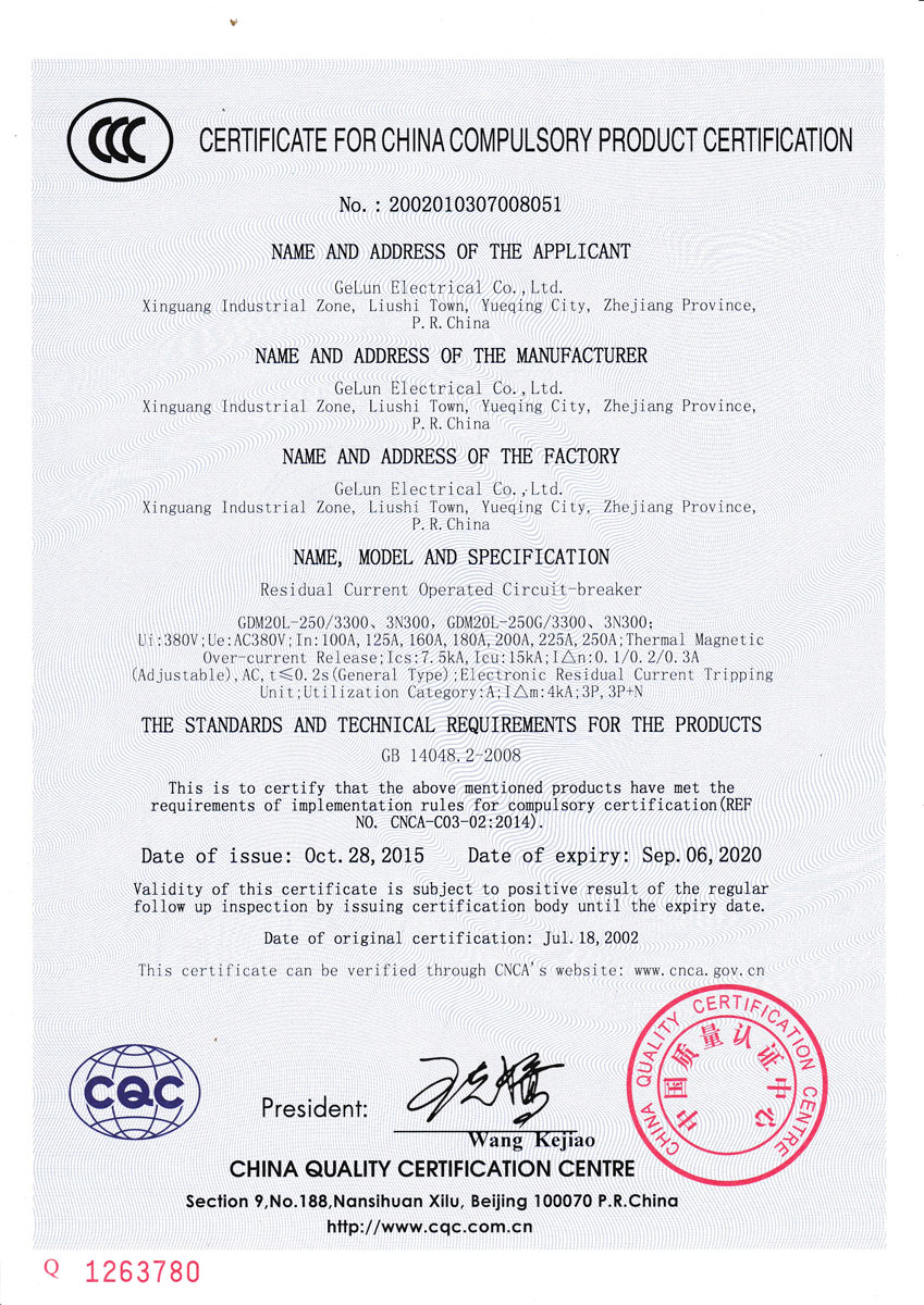 GDM20L series residual current operated circuit breaker is suitable for AC 50Hz rated working voltage 380V and below, its rated current to 630A power supply neutral point directly grounded in the power supply system. For the purpose of electric leakage protection, it can also be used to prevent fire hazard caused by grounding fault current caused by equipment insulation damage. It can also be used to distribute electric energy and protect lines and power equipment from overload and short circuit. The circuit breakers can also be used in lines infrequent conversion, with the letter "G" signifying the breaker has a transparent frame.