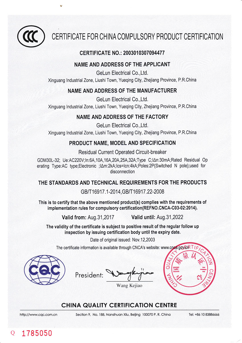 Comply with the IEC1009-1、GB/T 16917.1、GB/T16917.22Standard