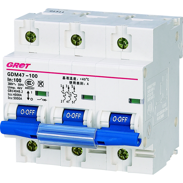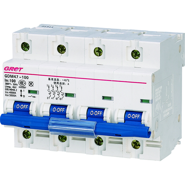 GDM47-125 (NC125) series molded case circuit breaker has high breaking capacity and current limiting characteristics, and isolation switch function. It can also assemble leakage protection accessories and can be combined with various electrical auxiliary devices to form functional switches. Used as an overload and short circuit protection in low-voltage distribution systems, it is suitable for isolation. The rated working voltage of the circuit breaker is AC230V (1P), AC400V (2P, 3P, 4P).