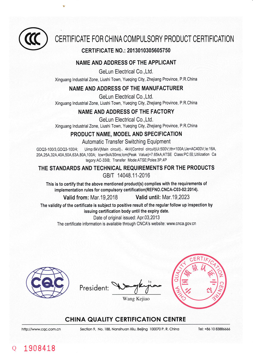 GDQ3 series (Svo type) dual power automatic transfer switch is PC grade, suitable for AC 50Hz/60Hz, rated working voltage 230/400V, rated current up to 630A in the dual power supply system. In case of common power supply fails, the switch can engage automatically with backup power or generator to ensure reliability and safety of power supply. The product has a flame-fighting interface, which can be easily linked with the fire-fighting equipment, and the switch is remotely controlled to cut off the power. The flame-fighting product has a generator interface, and the switching gear position is three-stage type.