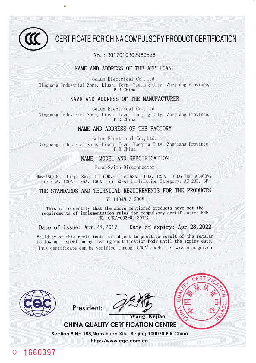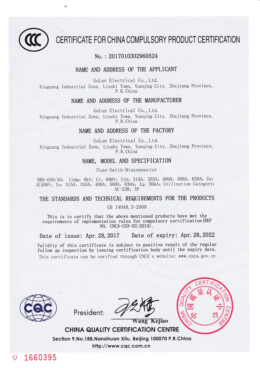 HR6 Series fuse disconnector is used in power switch, disconnector and emergency switch for manual infrequent operation in distribution circuit and motor circuit with high short-circuit current of 50Hz rated, operating voltage up to 660V and agreed heating current up to 630A, in order to protect the circuit from short current.
