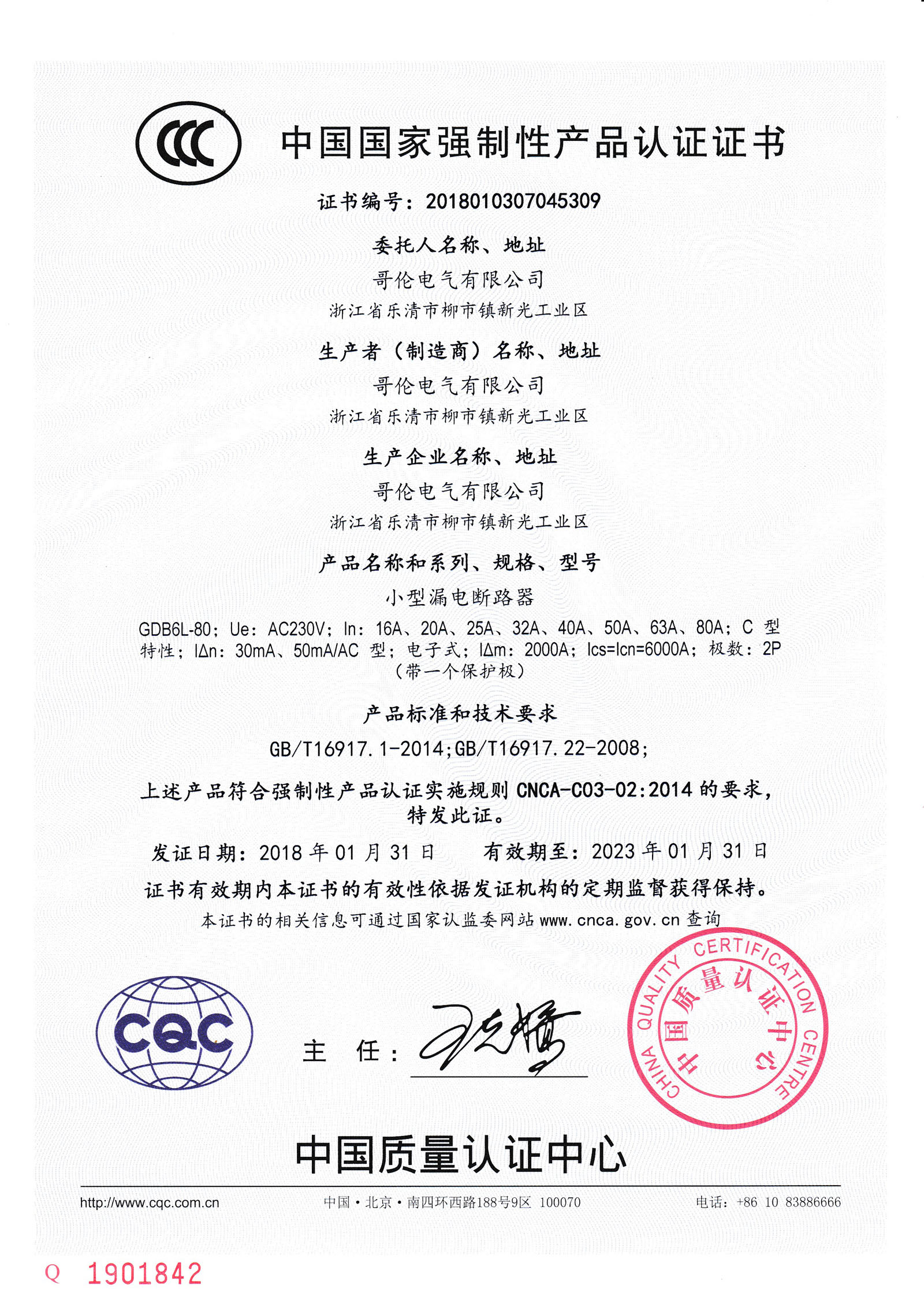 符合IEC1009-1、GB/T 16917.1、 GB/T 16917.22標準