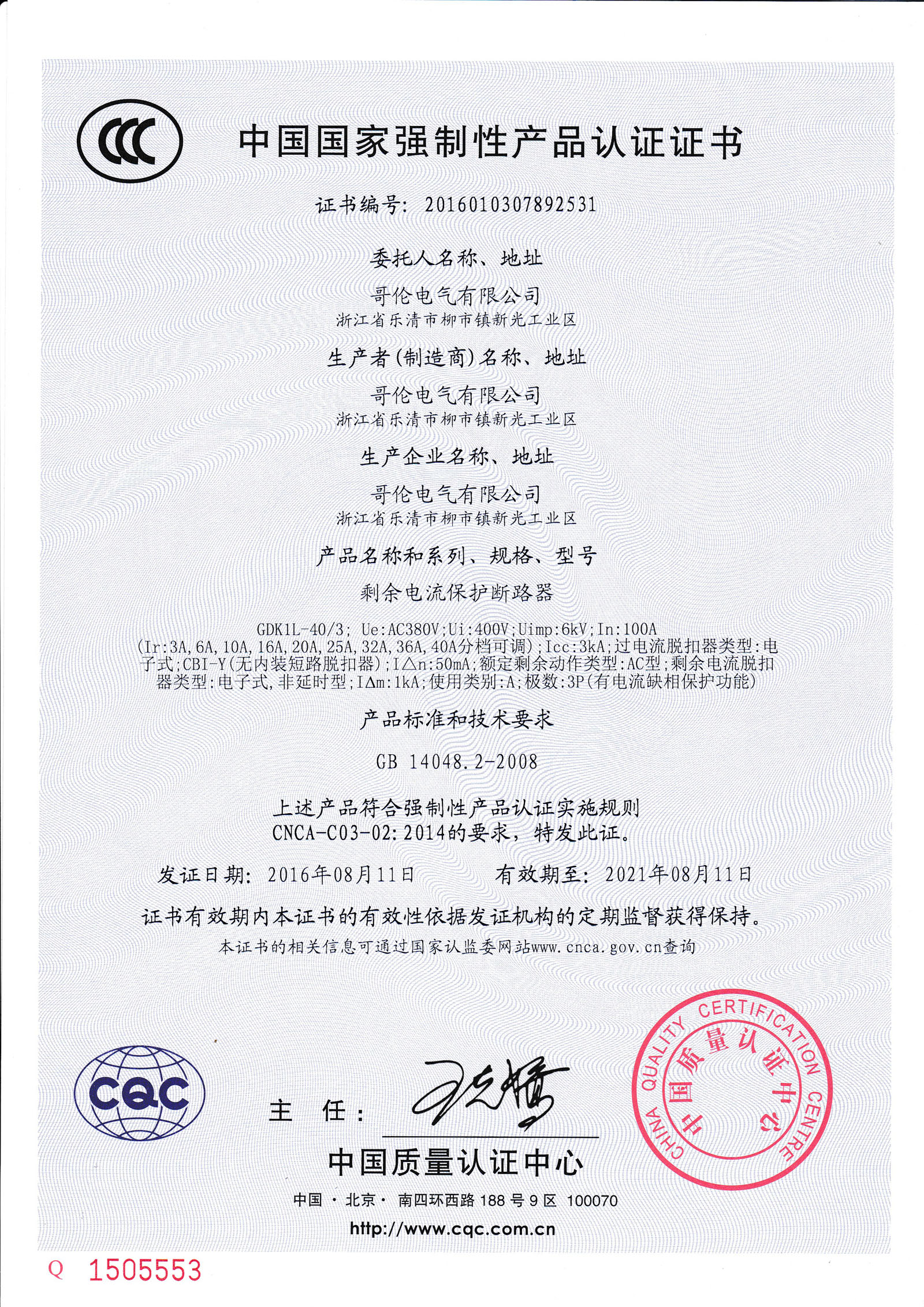 產(chǎn)品符合IEC60947-2、GB/T 14048.2標準。