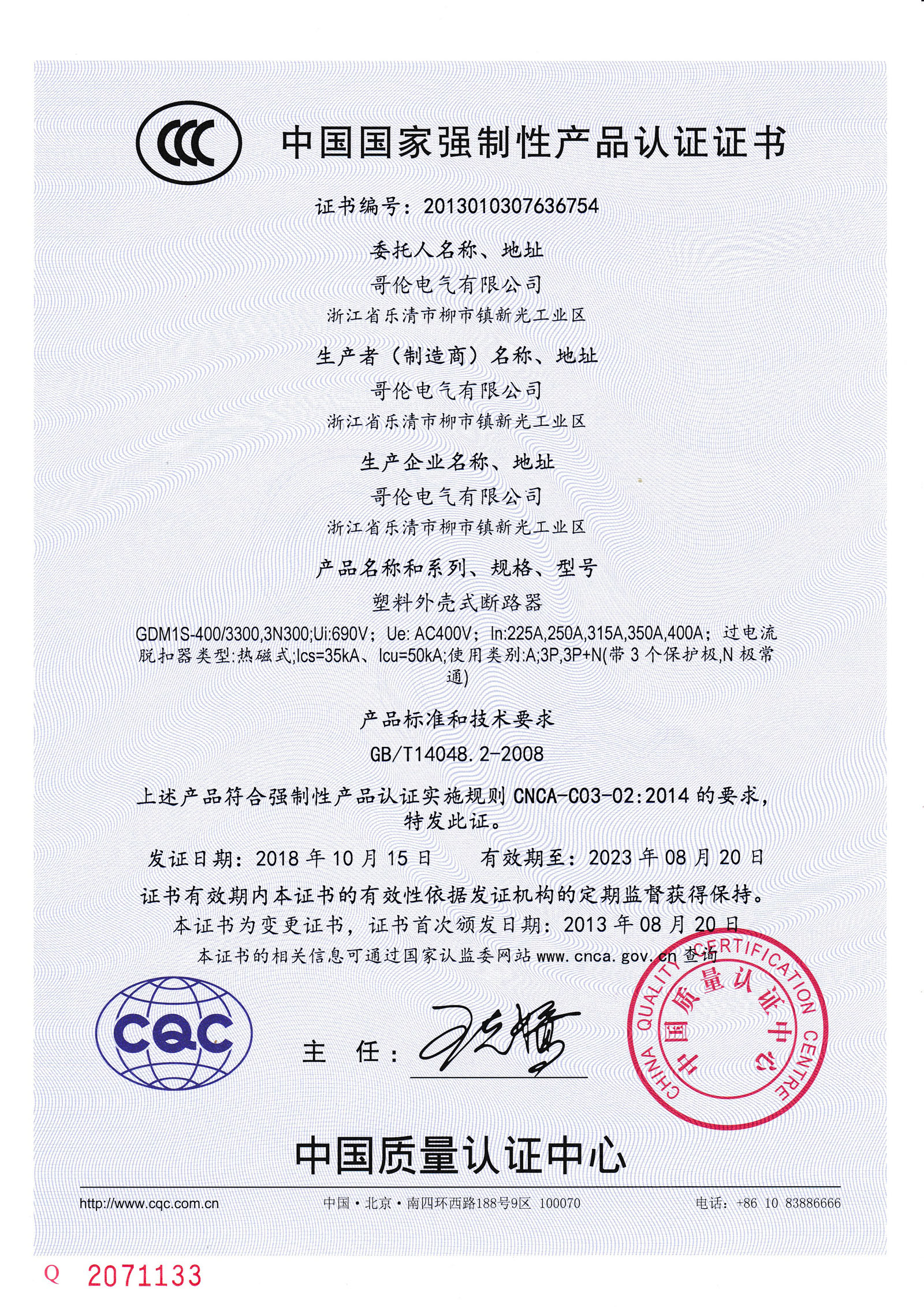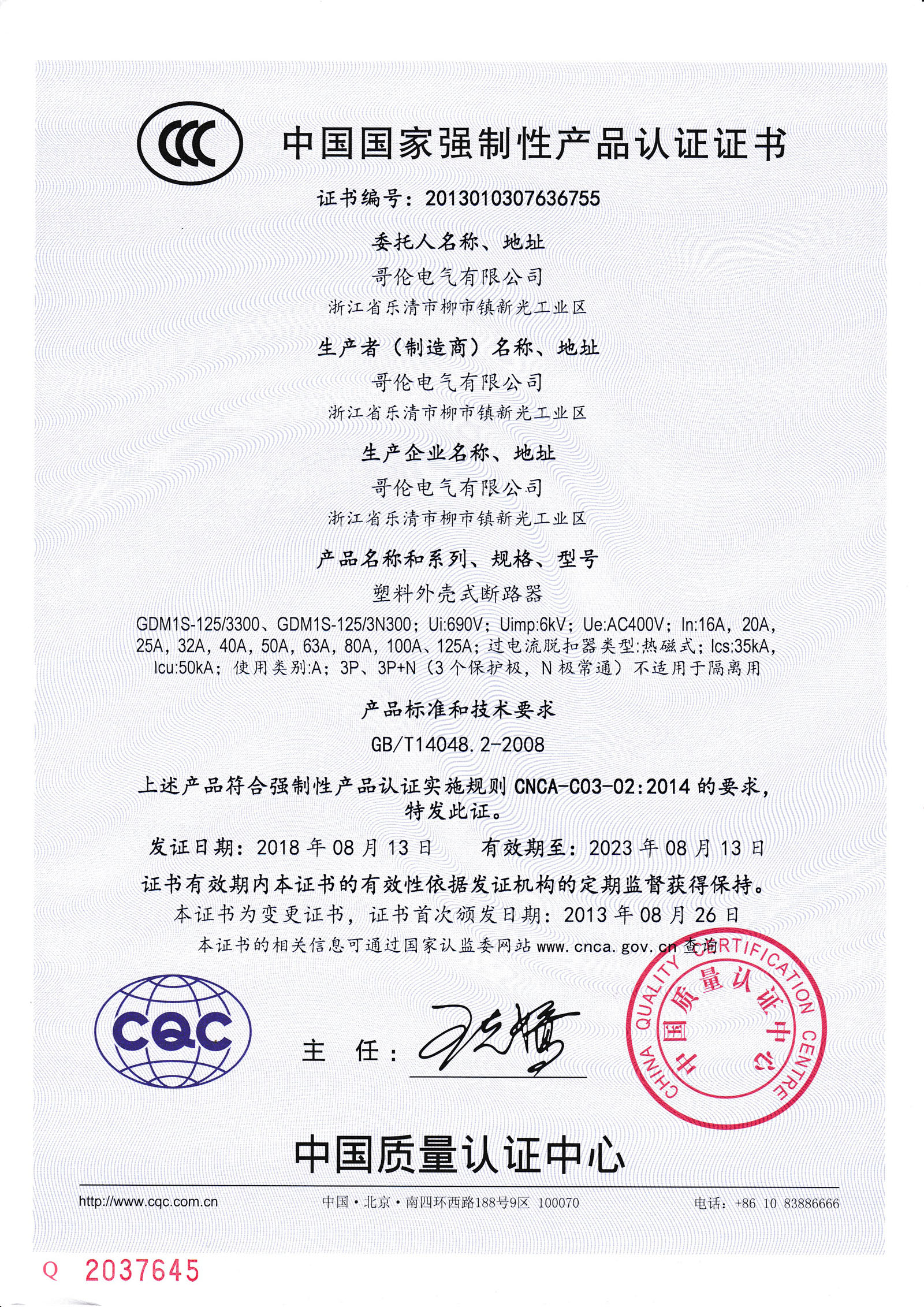 產(chǎn)品符合IEC60947-2、GB/T 14048.2標準。