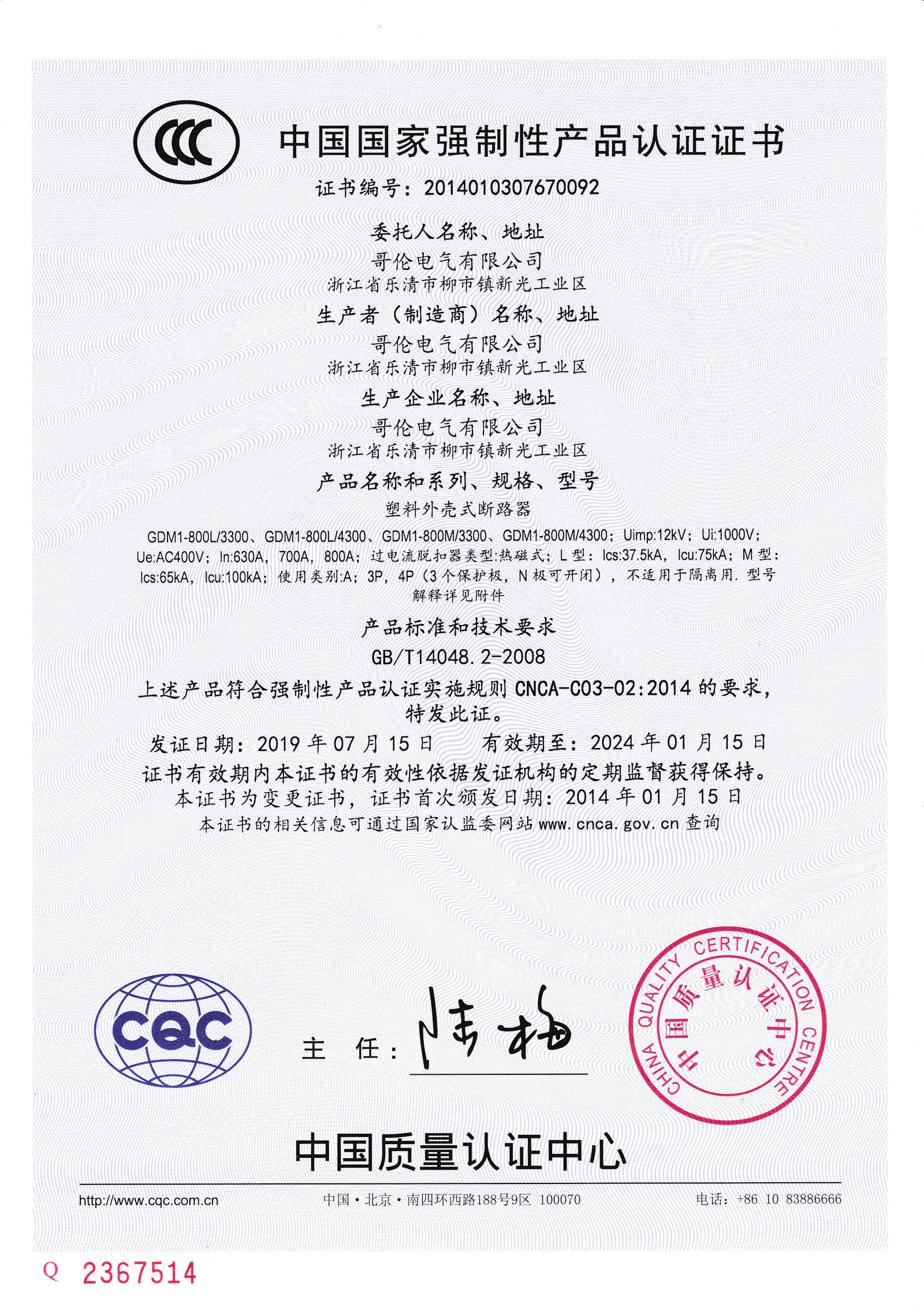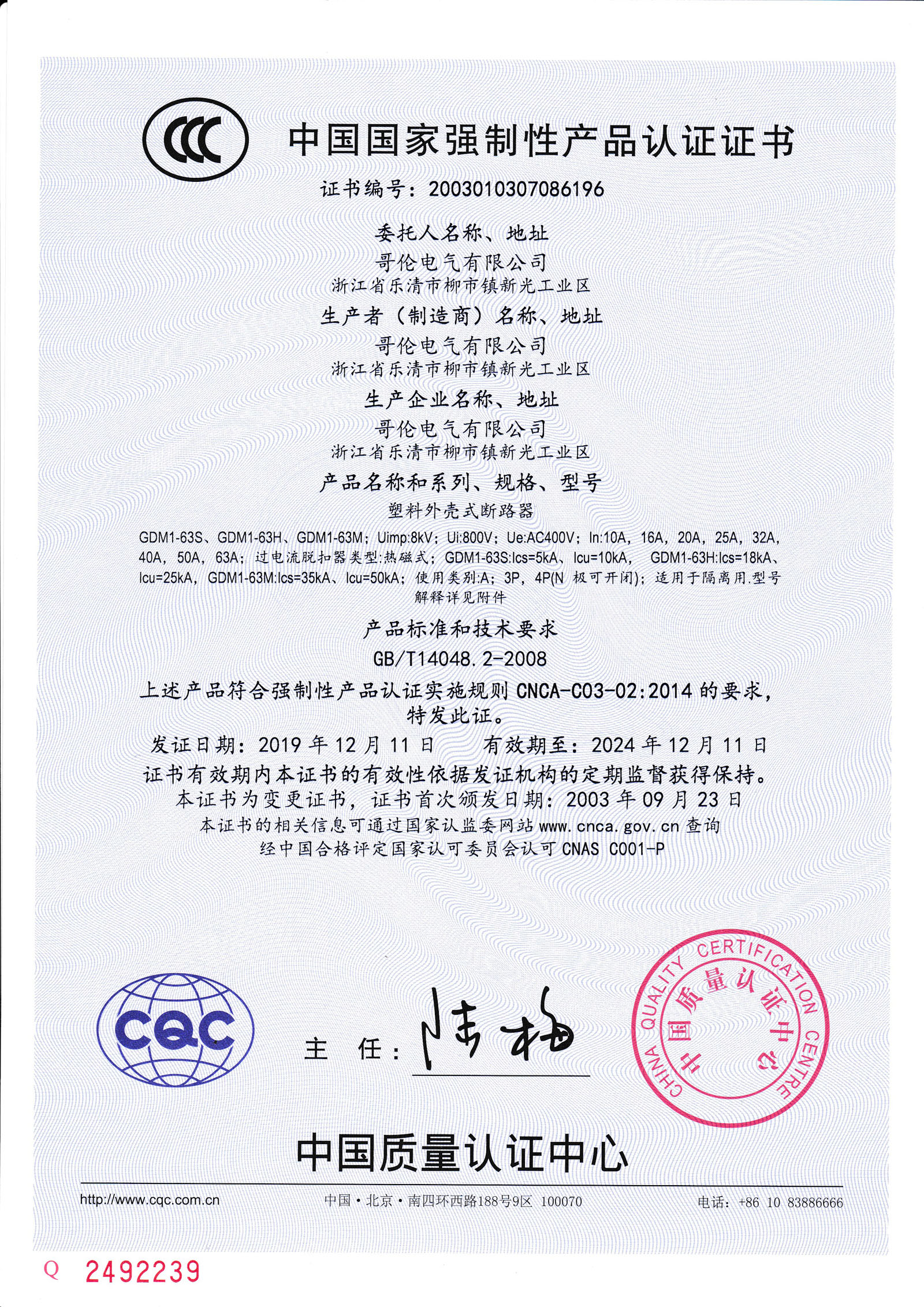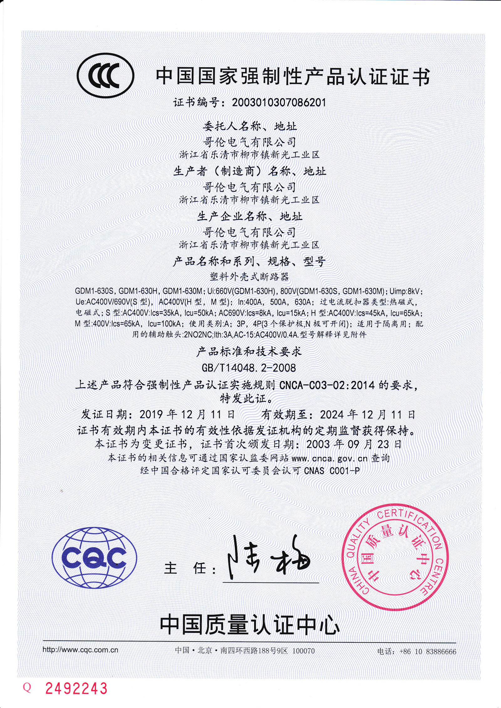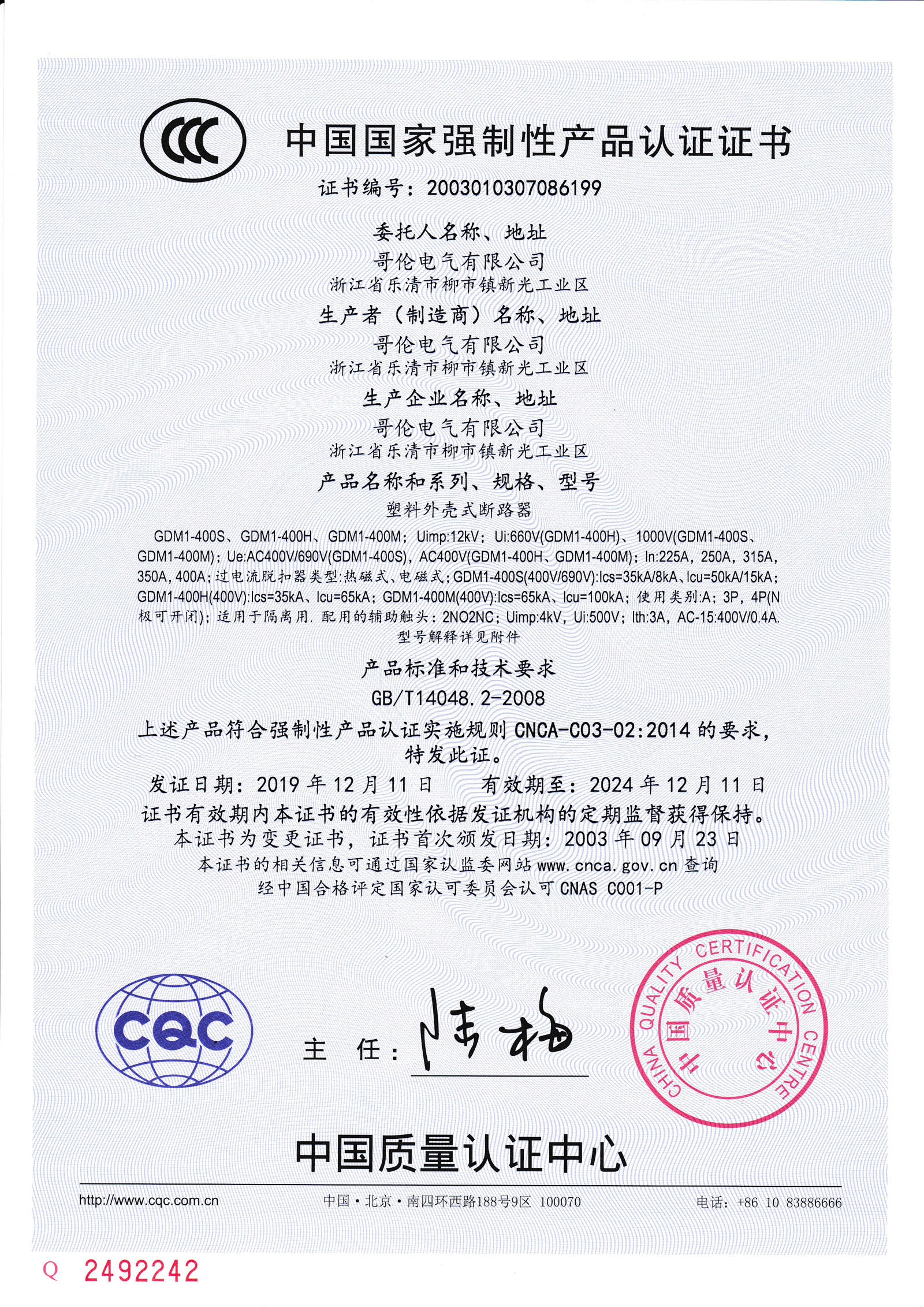 產(chǎn)品符合IEC60947-2、GB/T 14048.2標準。