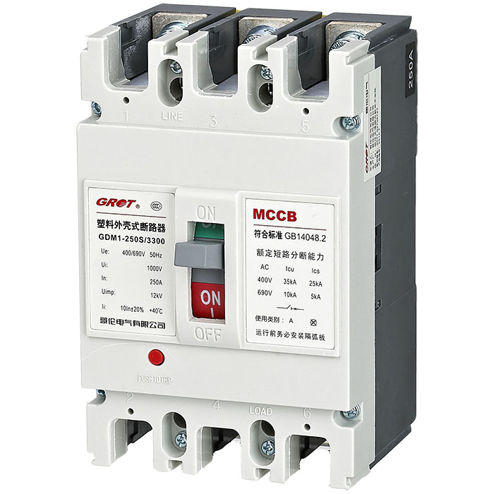 GDM1系列塑料外殼式斷路器適用于交流50Hz或60Hz,絕緣電壓800V(1000V),額定工作電壓至690V的配電網(wǎng)絡(luò )電路中,用來(lái)分配電能和保護線(xiàn)路及電源設備免受過(guò)載、短路、欠電壓等故障的損壞。同時(shí)也能作為電動(dòng)機的不頻繁啟動(dòng)及過(guò)載、短路、欠電壓保護。該斷路器具有體積小、分斷能力高、飛弧短(或無(wú)飛?。┑忍攸c(diǎn),斷路器垂直安裝(即豎裝),亦可水平安裝(橫裝),是用戶(hù)使用的理想產(chǎn)品。