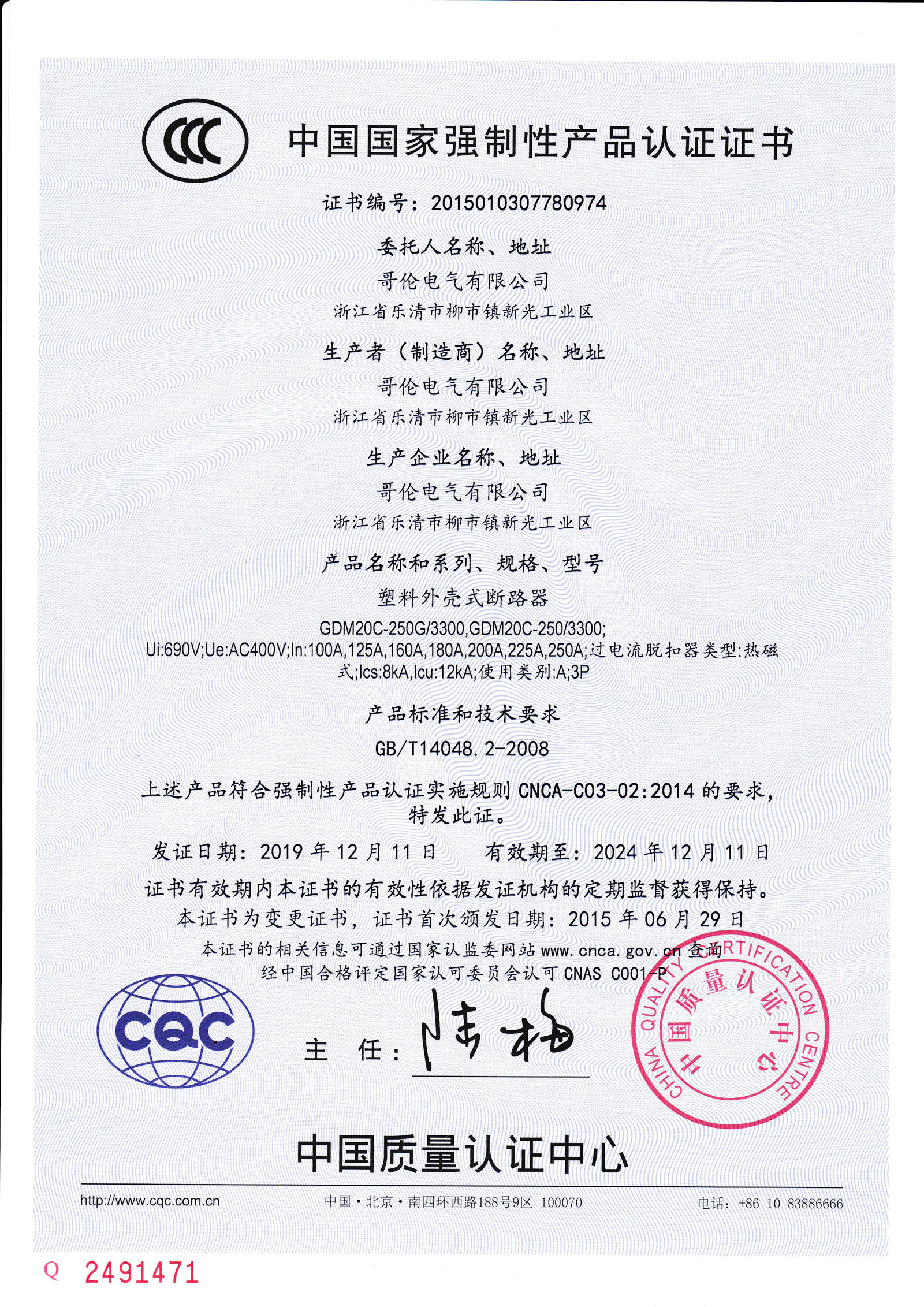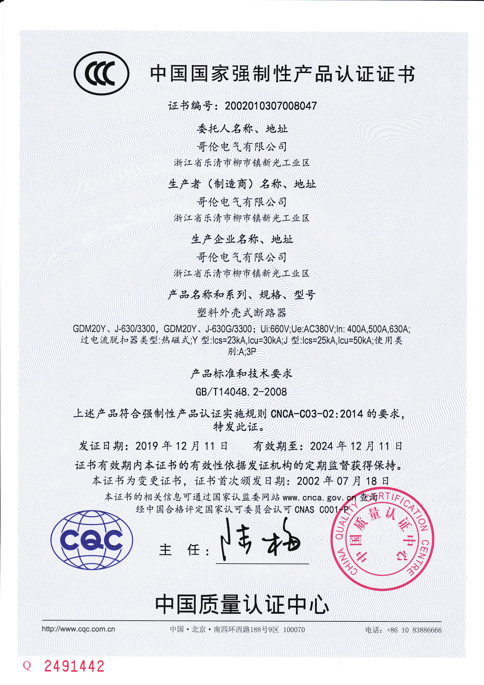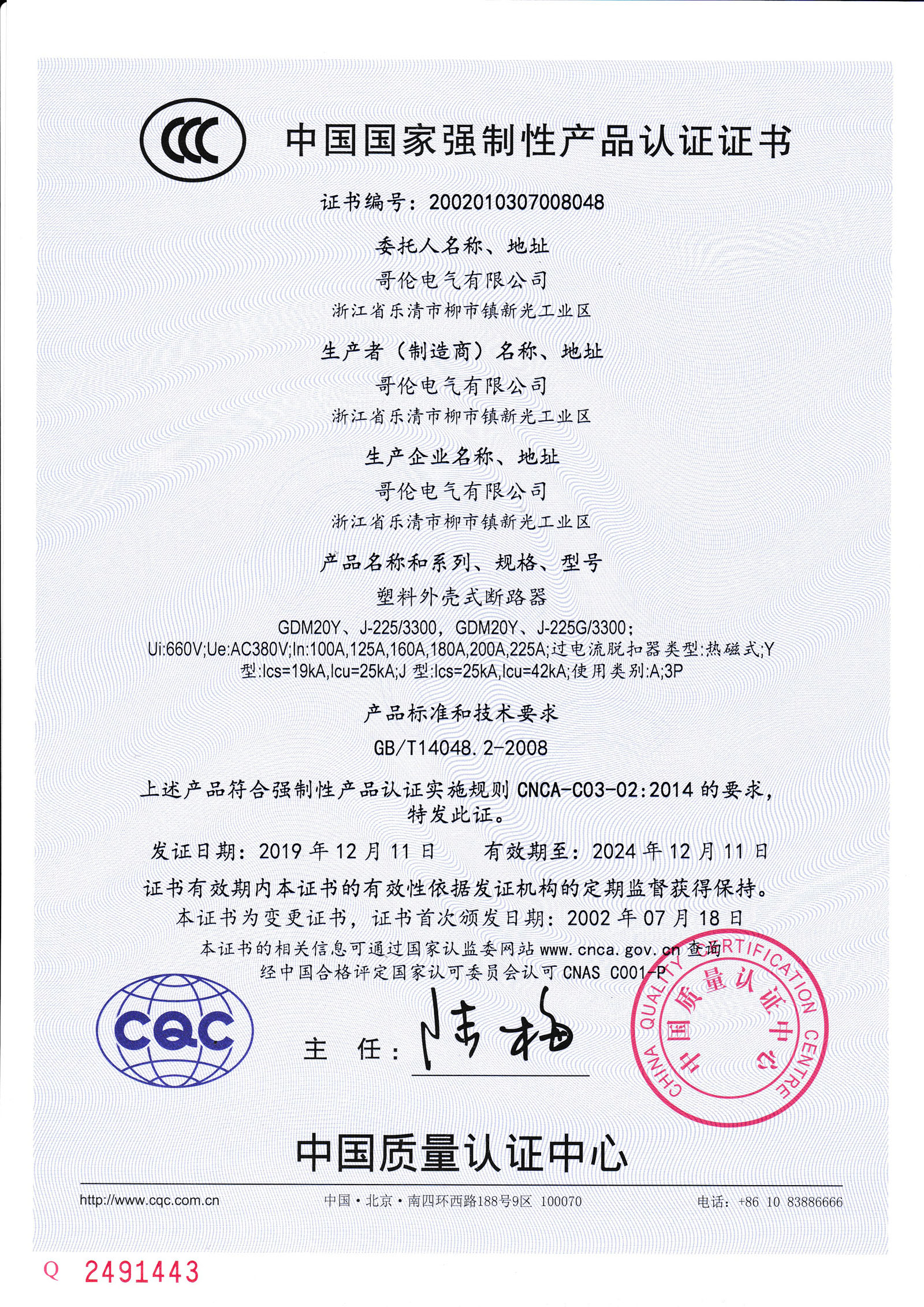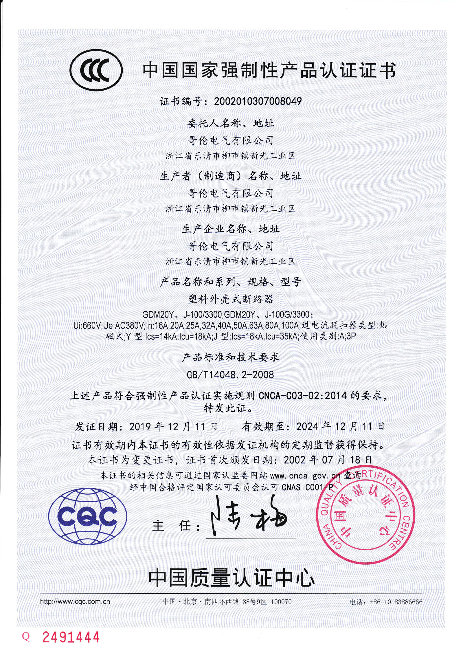 符合IEC60947-2、GB/T 14048.2標準。