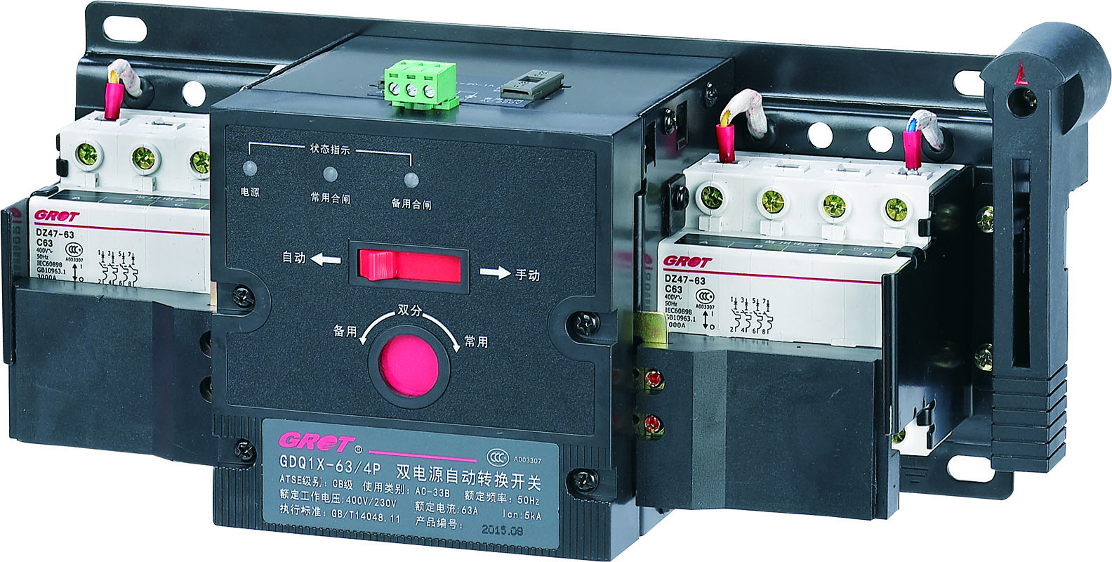GDQ1X系列雙電源自動(dòng)轉換開(kāi)關(guān)為CB級,適用于交流50Hz /60Hz,額定工作電壓230/400V額定電流至63A的雙電源供電系統,在常用電源發(fā)生故障時(shí),切換開(kāi)關(guān)可以實(shí)現與備用電源或發(fā)電機的自動(dòng)切換,以保證供電的可靠性和安全性。用以保證醫院、商場(chǎng)、銀行、消防、高層建筑等不允許停電的供電場(chǎng)所。消防型產(chǎn)品帶有消防接口,能方便地同消防設備聯(lián)動(dòng),遠程控制本開(kāi)關(guān)切斷電源。消防型產(chǎn)品帶有發(fā)電機接口,可方便實(shí)現自動(dòng)啟動(dòng)或停止發(fā)電機。