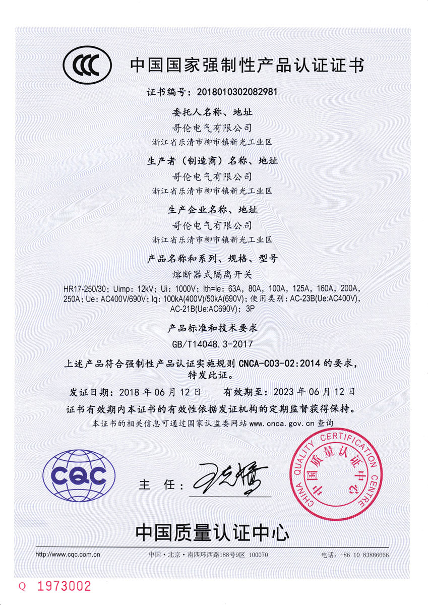 符合IEC60947-3、GB/T 14048.3標準。